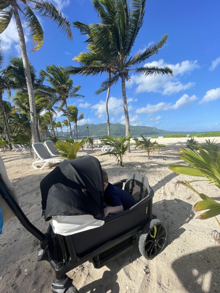 - Kinderwagen: wij namen een bolderkar mee die plat kon, ideaal voor dutjes op het strand. Je levert hem gewoon in bij de speciale bagage. Wij hebben de Veer bolderkar.