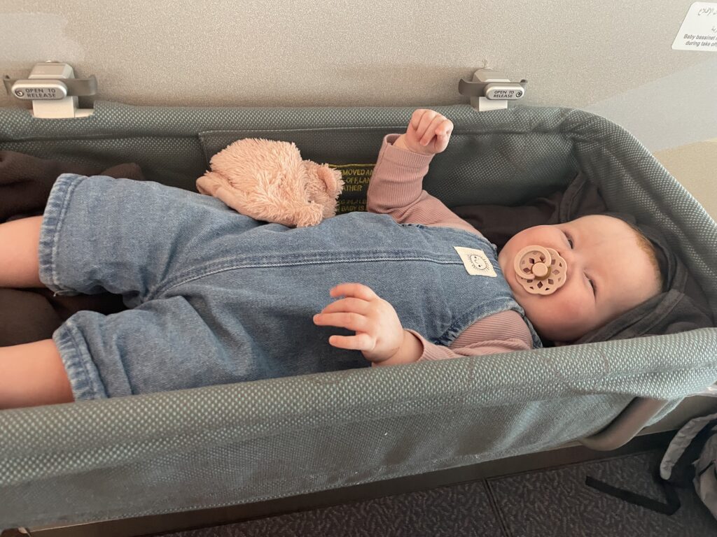 - Voor de baby hadden we een vliegtuigbedje (bassinet), waardoor zij lekker kon slapen en wij dus ook!